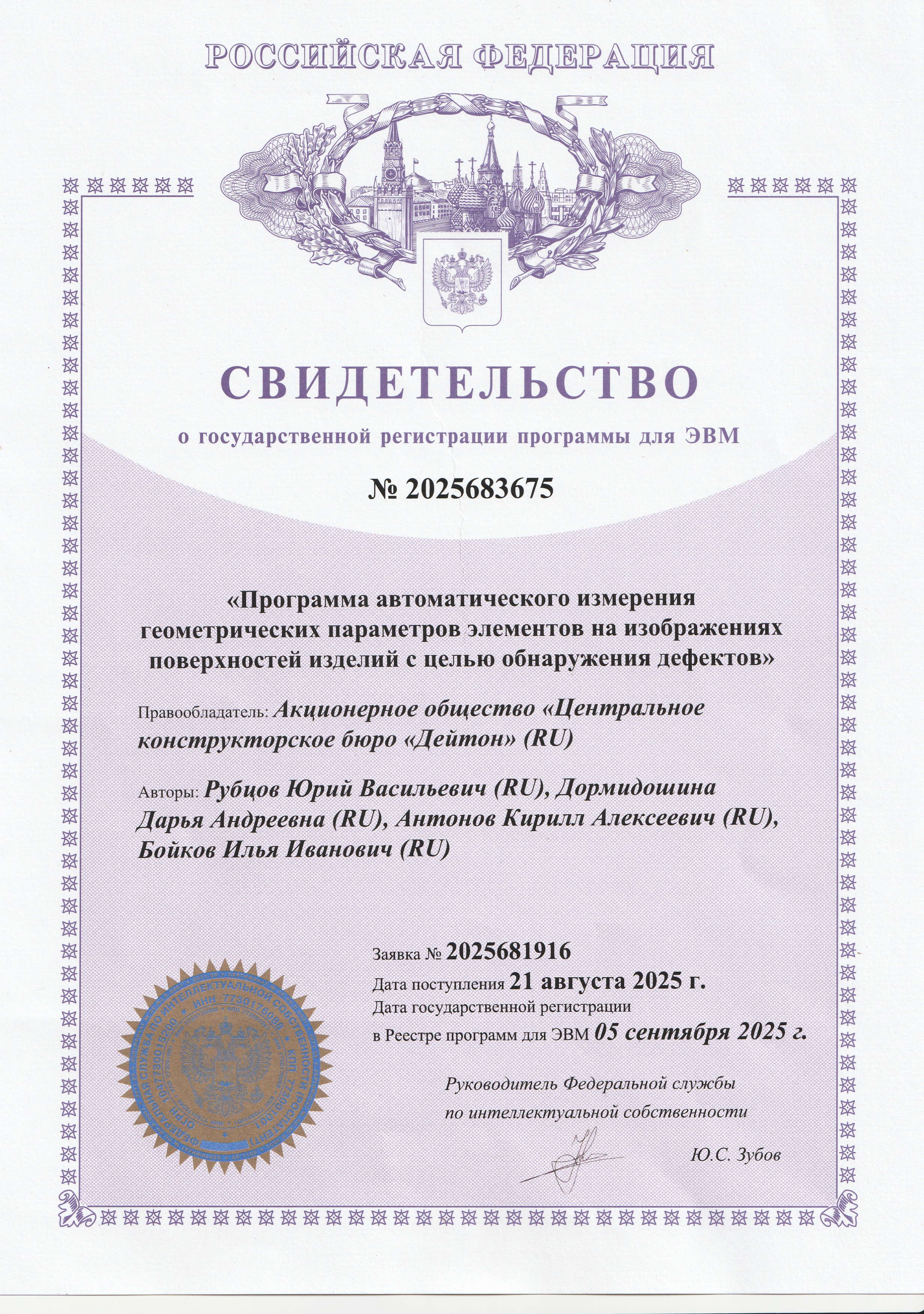 4. Свидетельство о государственной регистрации программы для ЭВМ "Программа измерения микродефектов для системы оценки контроля качества изделий электронной техники с использованием технологий компьютерного зрения"