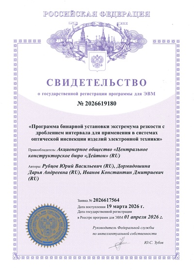 Разрабатываемые в АО «ЦКБ «Дейтон» робототехнические комплексы позволяют выявлять элементы изделий и получать свойства материалов, не отвечающие установленным требованиям, протоколировать процессы проверки и получать сводную информацию по обнаруженным бракам и дефектам, рассчитывать выход годных, проводить анализ роста или снижения качества изготавливаемых изделий, помогать выстраивать технологические процессы, обеспечивающие требуемое качество изделий.
