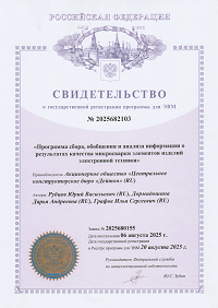 4. Свидетельство о государственной регистрации программы для ЭВМ "Программа измерения микродефектов для системы оценки контроля качества изделий электронной техники с использованием технологий компьютерного зрения"